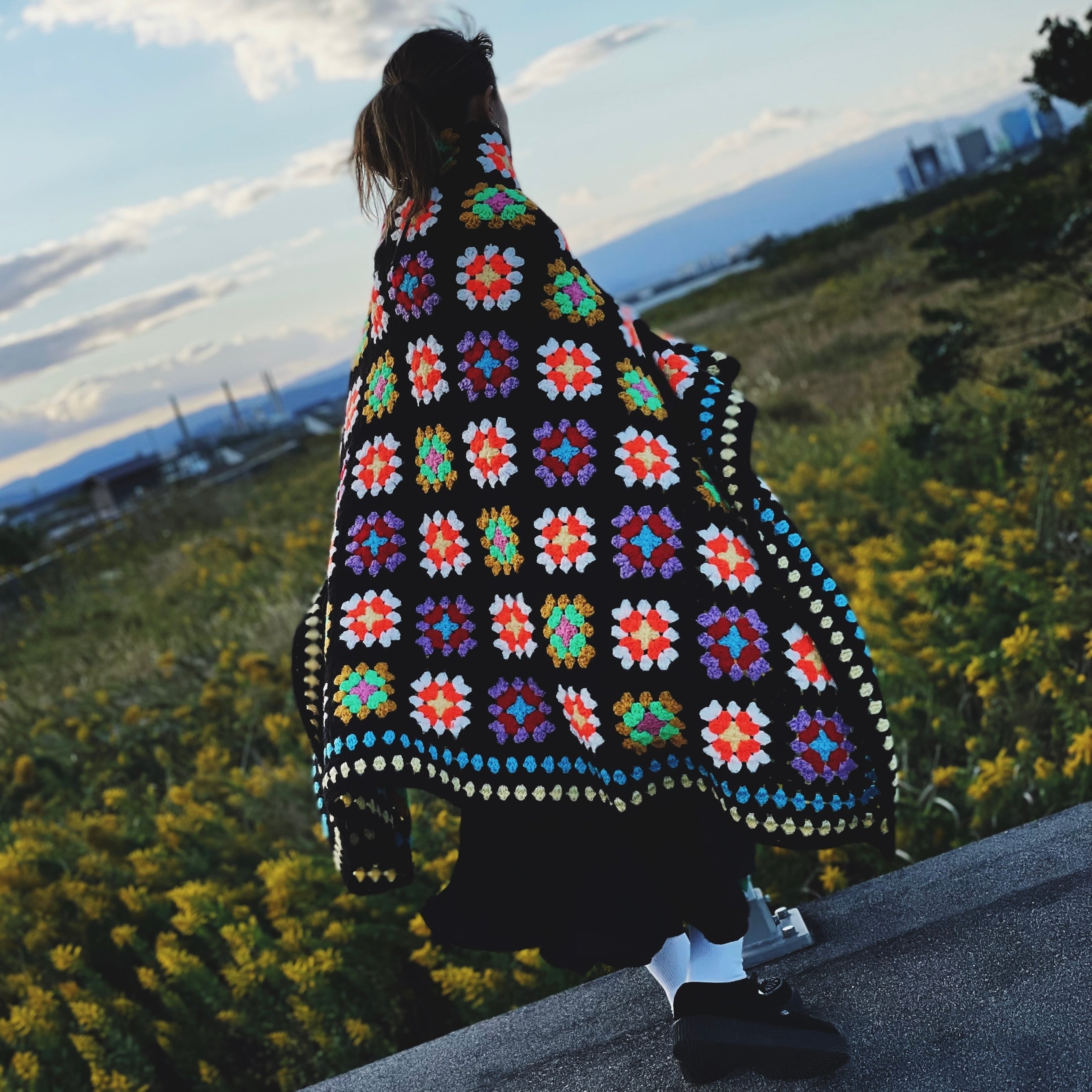 大きな手編みのブランケット